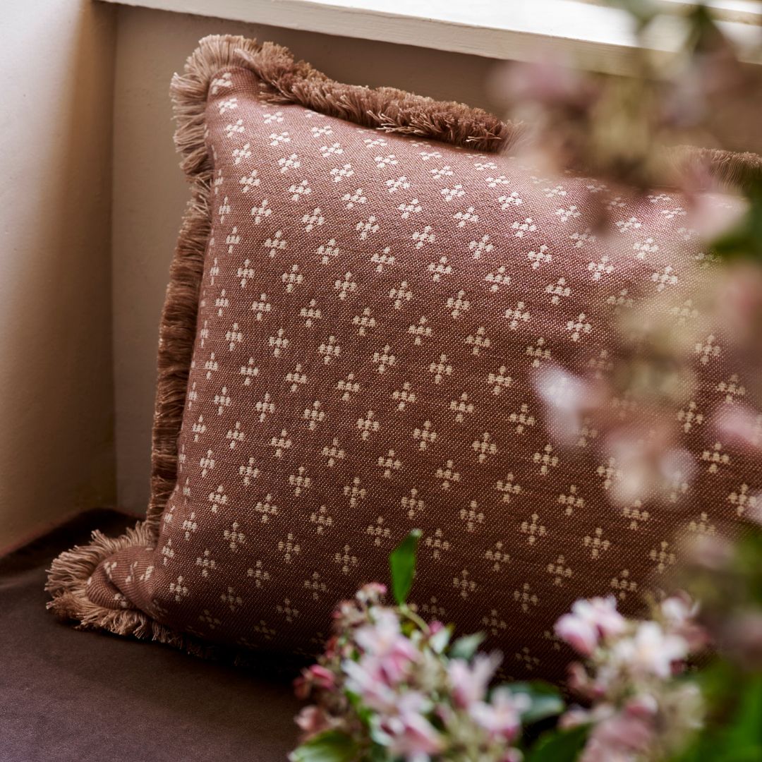 Cushion Ditsy Wool Redwood / Claret Fringe 60cmx40cm