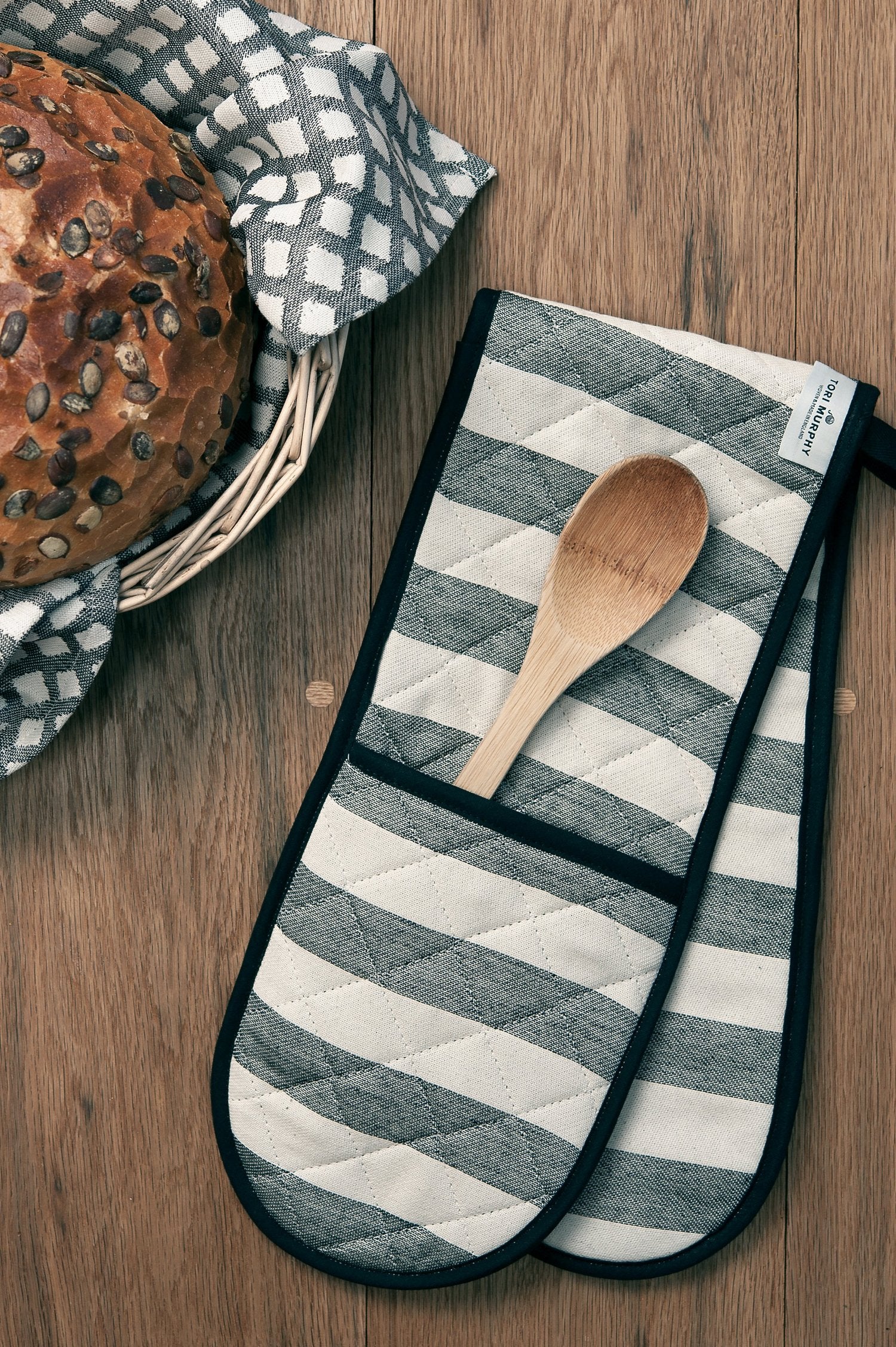 Fastnet Stripe Double Oven Glove Fawn